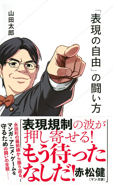 山田太郎の著書『「表現の自由」の闘い方』(星海社新書)。赤松健による、山田をヒーロー化した漫画も収録されている。